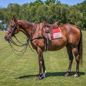 Cocoa won her 1st 'Best Playing Pony' title in 2014, playing for Scotland. This bay thoroughbred is a former racehorse from Suffolk Downs, and coming into her prime as a polo pony.